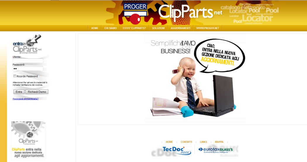 Per velocizzare l'accesso al programma potete: Aggiungere la pagina web di ClipParts Net tra i Preferiti, salvare il collegamente sul desktop e memorazzare i dati di accesso (utente/ password).